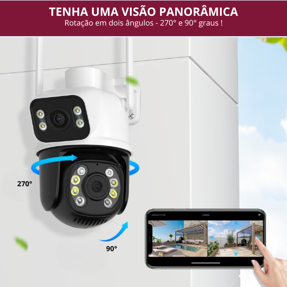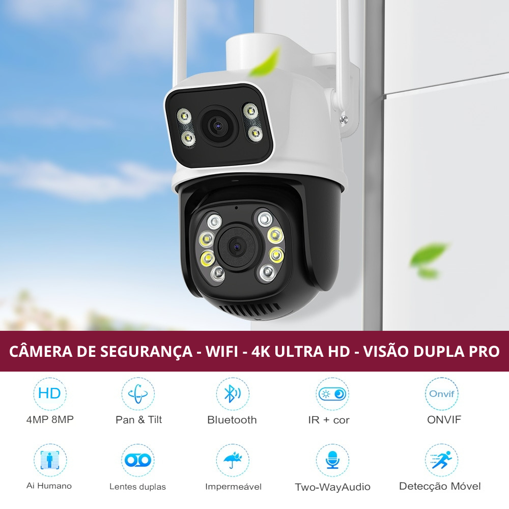 Proteja seu espaço com a mais avançada tecnologia de vigilância - a Câmera de Segurança WiFi 4K Visão Dupla Pro. Combinando resolução ultra HD 4K e visão dupla, esta câmera proporciona uma vigilância completa e nítida em todos os momentos. Aqui está o porquê você precisa garantir a sua: