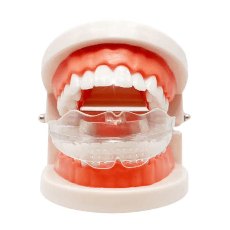 - Posiciona os dentes de forma correta, acaba com estalos no maxilar ao abrir e fechar a boca, elimina o cansaço no rosto, língua e gengiva;
