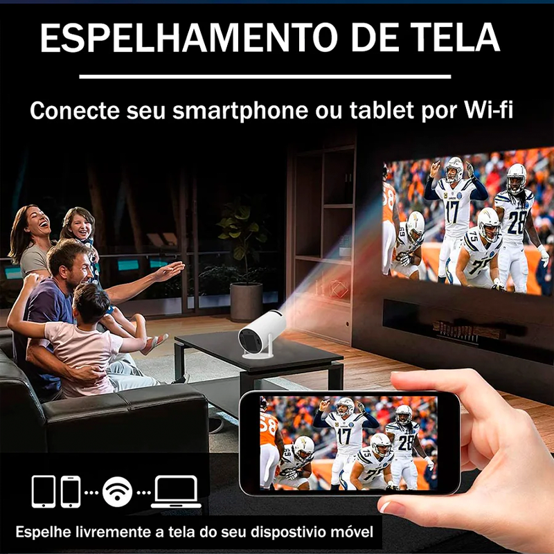 Mas não é só a qualidade da imagem que define esse projetor como a escolha definitiva. Sua portabilidade excepcional significa que você pode levá-lo facilmente a qualquer lugar, seja para uma noite de cinema ao ar livre, uma apresentação importante no escritório ou simplesmente para curtir seus programas favoritos em qualquer canto da casa