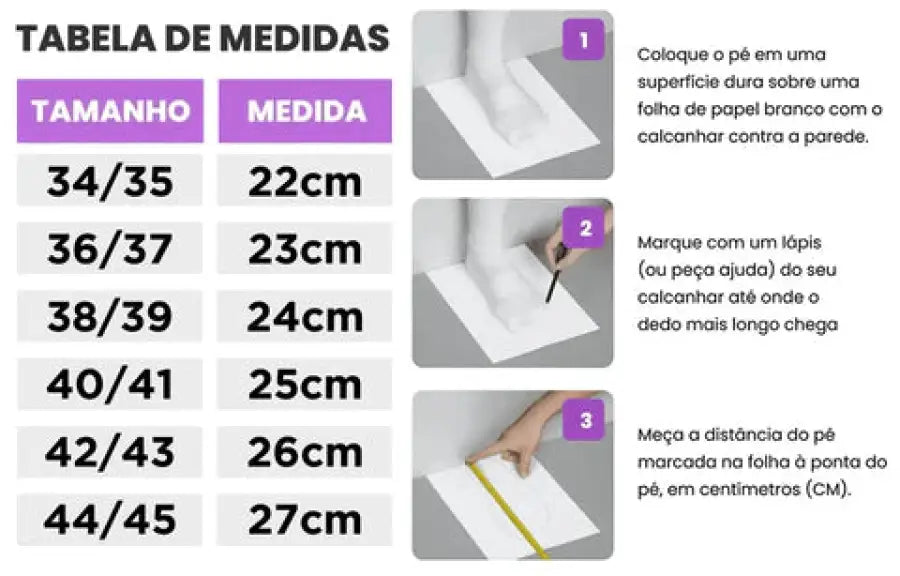 A TopFlex irá se adequar 100% ao formato dos seus pés. Veja a dica para descobrir o tamanho ideal e escolha logo a sua.